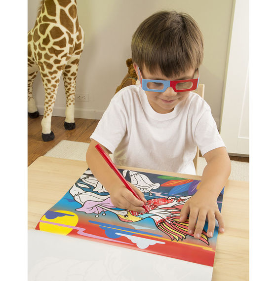 Easy-to-see 3-D coloring pad! Just follow the color-coded dots to create spectacular visual effects! Includes 30 pages of exciting animal scenes for loads of coloring fun and the included 3-D glasses transform the pages into multi-dimensional scenes.